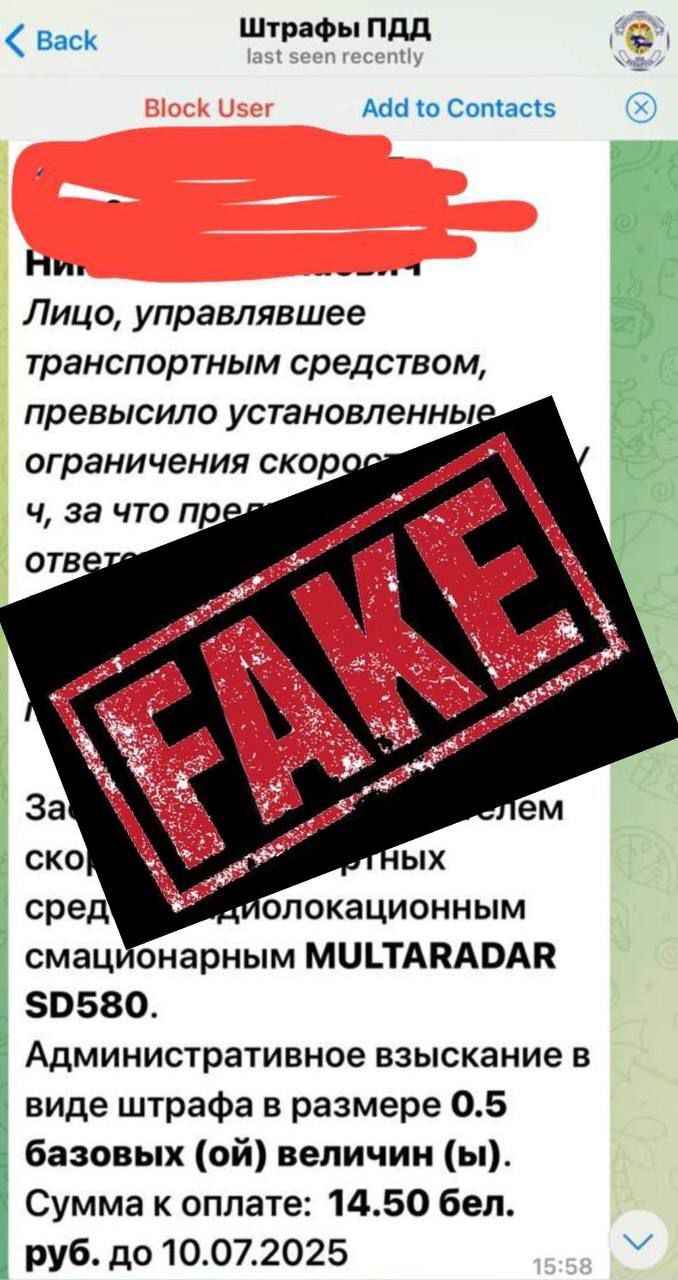 Таким образом, пришли к выводу авторы Telegram-канала “Обратная сторона”, данная рассылка в мессенджерах - очередная попытка мошенников развести законопослушных белорусов на деньги, а информация о выписанных штрафах - не более чем фейк.