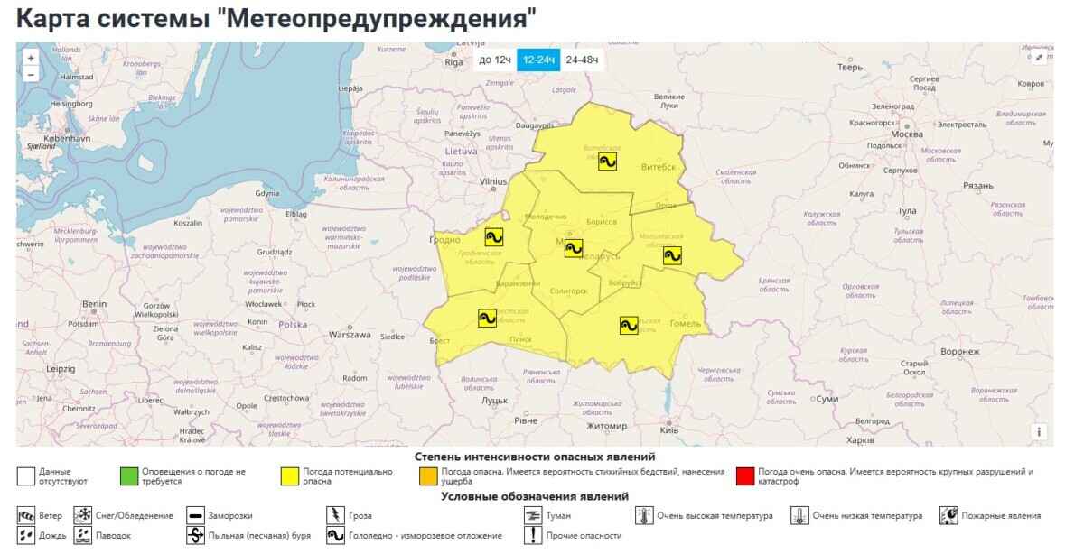 Отметим, что на ближайшие сутки (как минимум до 21:00 воскресенья, 9 февраля) синоптики Белгидромета объявили по всей стране жёлтый уровень метеоугрозы из-за потенциально опасной гололедицы, которая может в эти выходные образовываться на отдельных участках дорог.