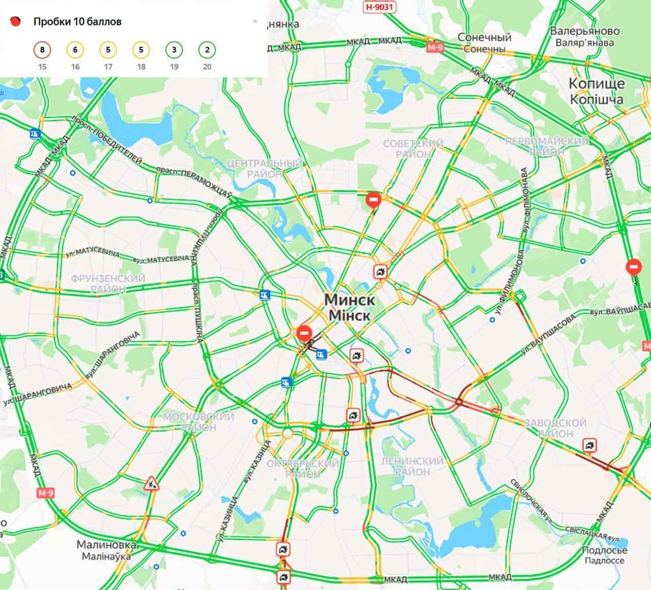 По данным Telegram-канала о погоде “Метеовайб”, 10-балльные пробки наблюдаются, в частности, на Партизанском проспекте. По словам одного из подписчиков канала, который поделился одним из видео, “Партизанский проспект сейчас плывёт”.