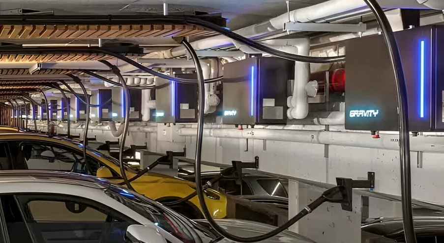 Новые зарядные устройства, установленные в гараже на Манхэттене в Нью-Йорке, могут перекачивать 500 киловатт энергии в электромобили. Gravity утверждает, что они могут обеспечить запас хода в 300 километров всего за пять минут.