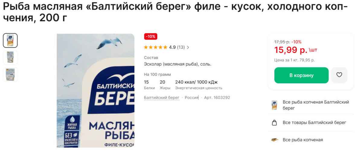 “Она просто бомба. Масляная рыба с ярким вкусом, сочная, жирная. Гриль, сковородка - готовится быстро и получается идеально”, — считают сотрудники магазина.