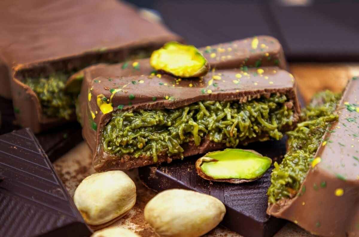 Оригинальный дубайский шоколад представляет собой двухсотграммовую плитку бельгийского шоколада с начинкой из теста катаифи, фисташковой пасты и тахини — кунжутной пасты.