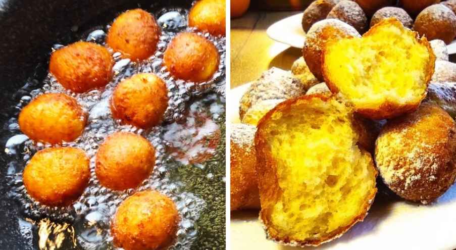 А что дальше? Разогрейте растительное масло в большой глубокой сковороде до 180 градусов. Положите туда шарики так, чтобы оставалось немного места, так как тесто увеличится в объеме во время жарки.