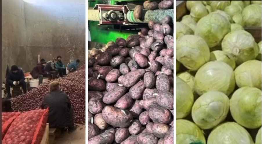 В министерстве антимонопольного регулирования и торговли (МАРТ) сообщили, что провели проверки на 20 базах, где хранятся овощи “борщевого набора”, в том числе и картошка. Чиновники также показали фото со складов.