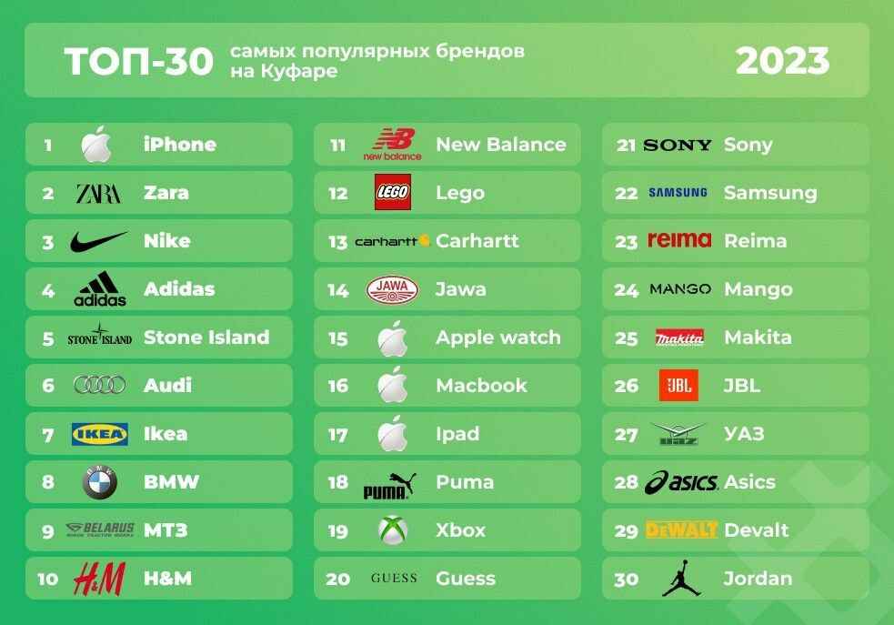 Чтобы узнать самые популярные запросы пользователей, портал объявлений Куфар проанализировал более миллиарда запросов пользователей за 2023 год. В топе оказались товары из категорий «Женский гардероб», «Мужской гардероб» и «Мебель». Все бренды – заграничные (в том числе ушедшие с рынка нашей страны). Кроме одного – да, есть и наш, отечественный.