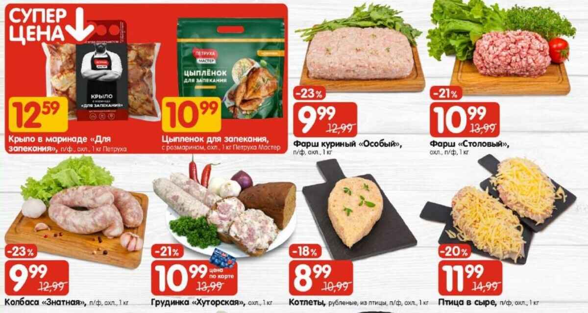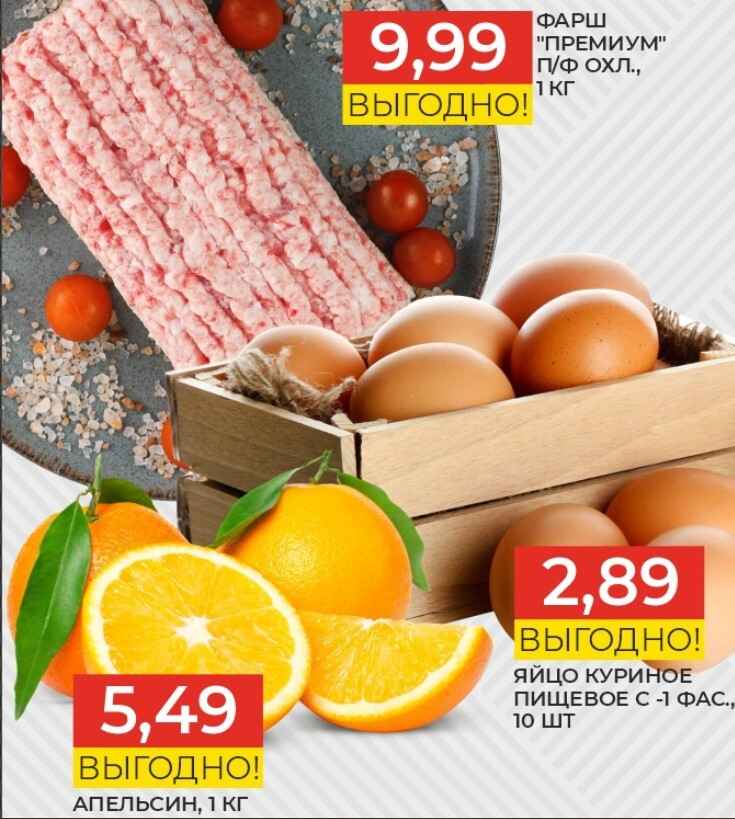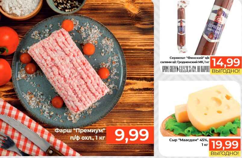 - фарш премиум “Охлажденный”, 1 кг - 9,99 рубля,