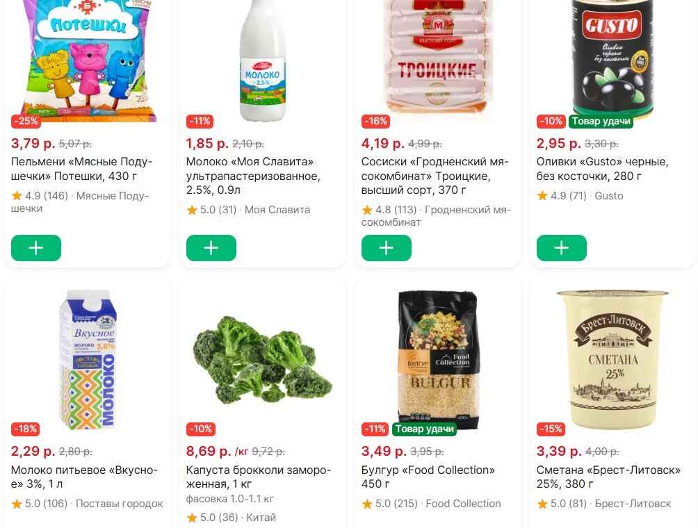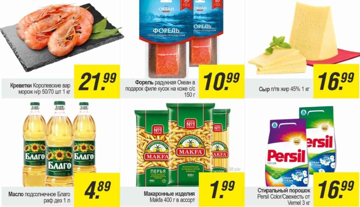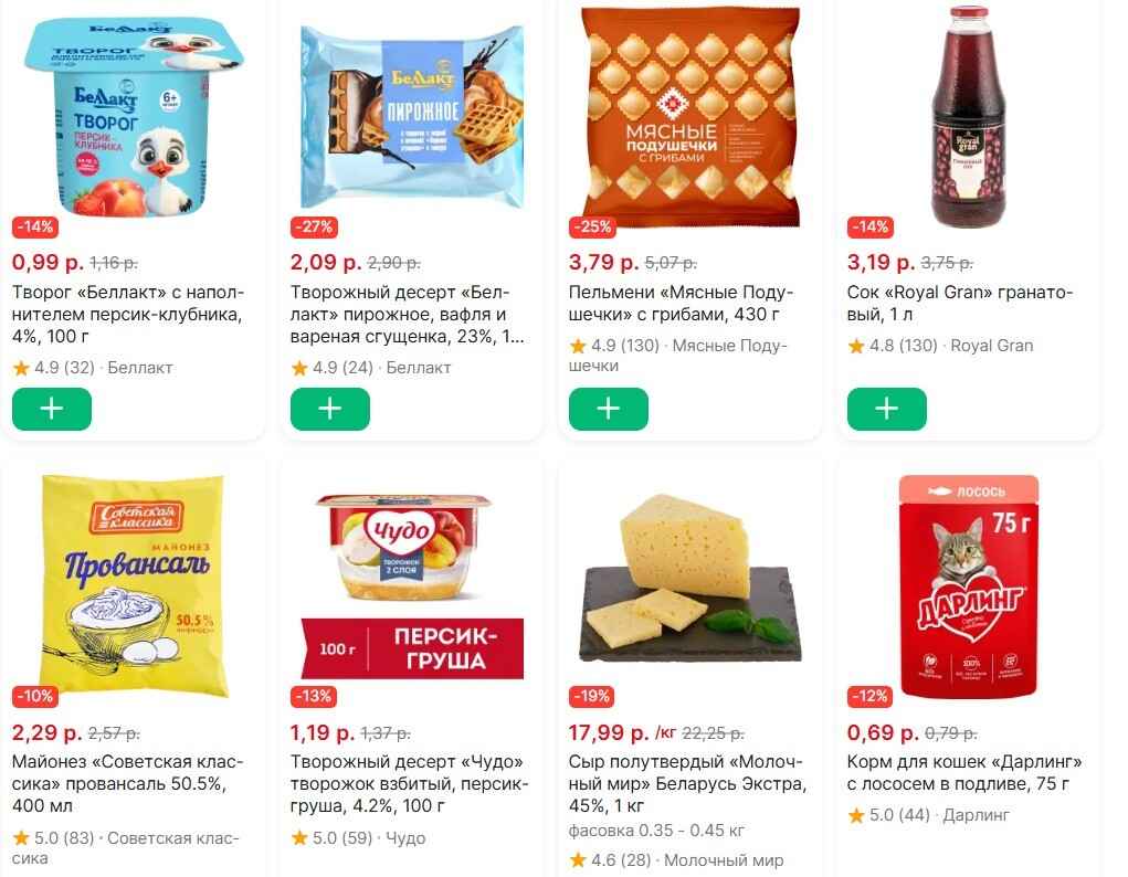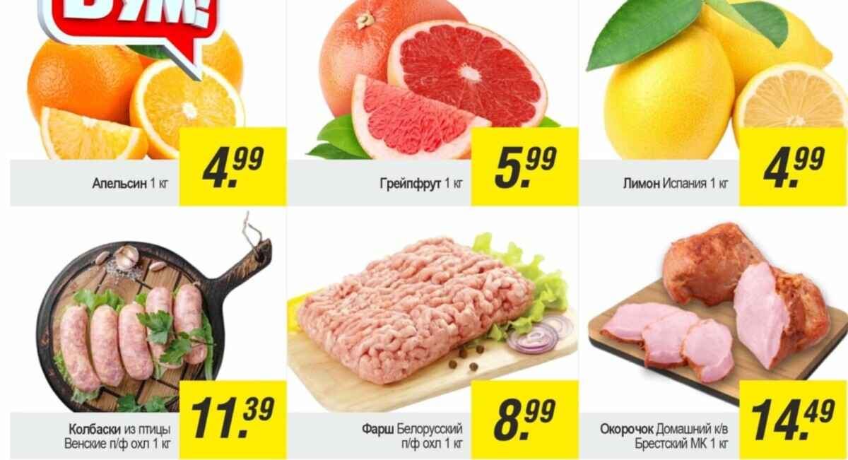 Впереди белорусов ждут выходные, а значит, можно пройтись по магазинам и закупиться нужными продуктами перед новой рабочей неделей. Журналист Telegraf.news посмотрел, какие акции подготовили магазины и где можно купить по сниженной цене фрукты, сыры, колбасы, кофе, масло, рыбу, гели для стирки.