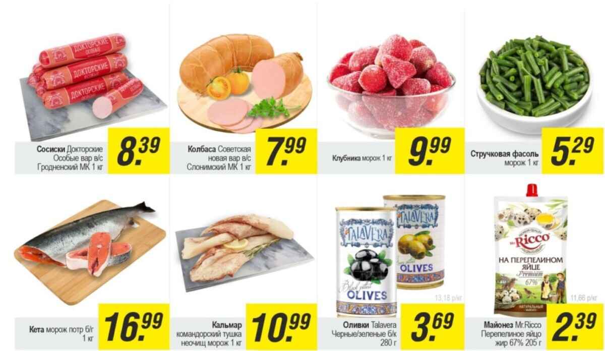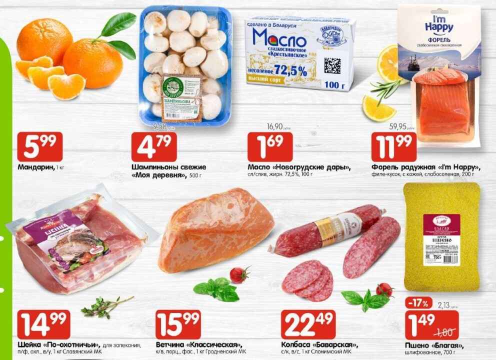 Также мы посмотрели акционный буклет супермаркетов сети “Алми” на период с 6 по 19 февраля . Там снизили стоимость мандарин, сливочного масла, форели, ветчины, шейки для запекания, колбас, кофе, винограда, голубики, котлет из рыбы и пр. Больше товаров, а также цены можно увидеть на скриншотах.