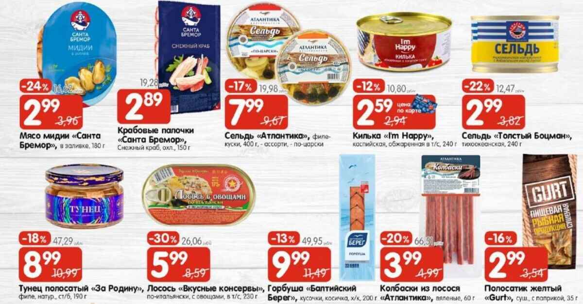 - Сардельки «Говяжьи», высший сорт, 1 кг - 7,89 (-14%).