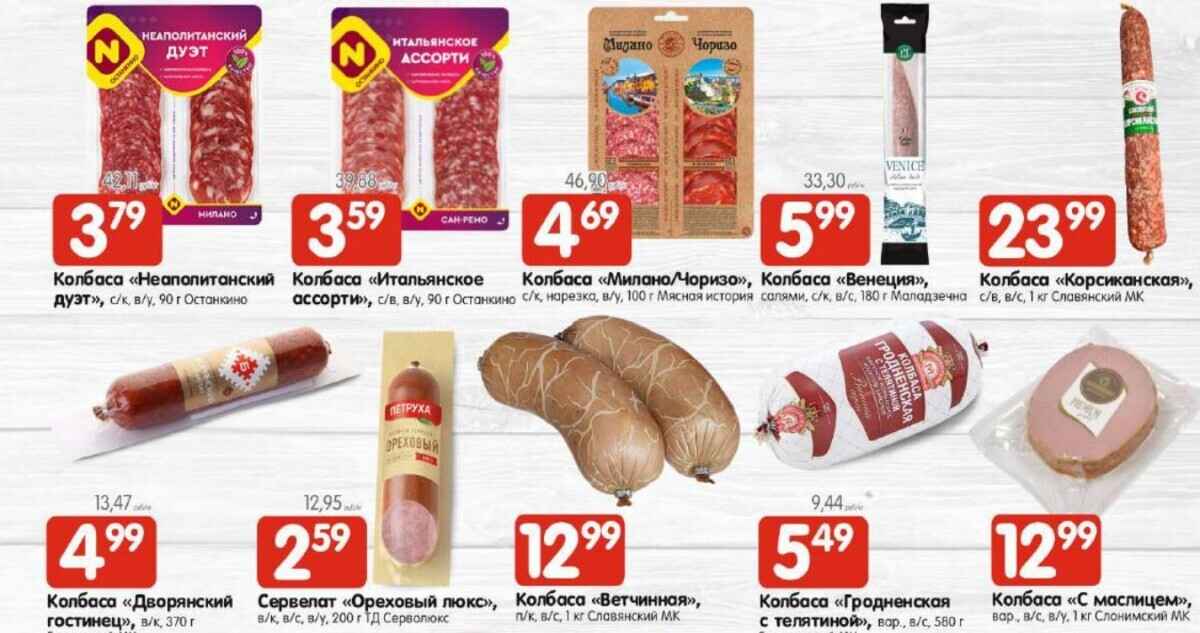 - Колбаса вареная «Докторская ароматная», 400 г - 3,85 (-13%).
