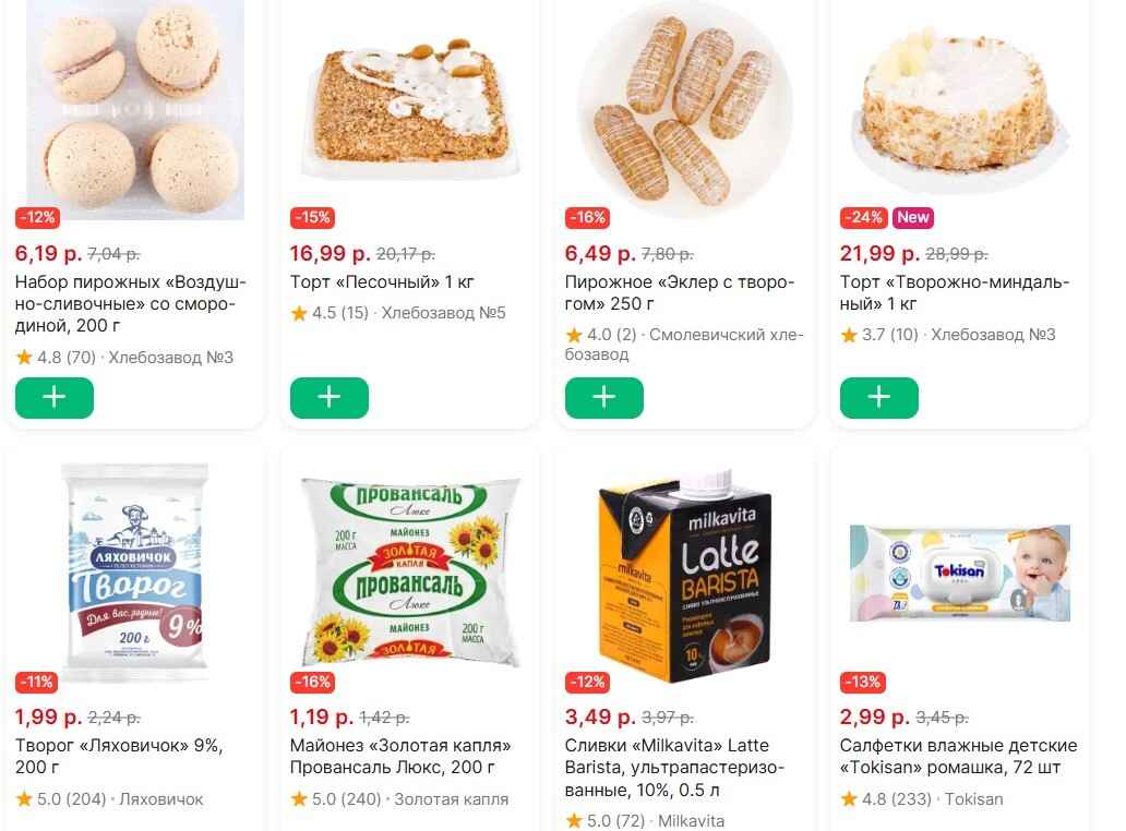 - Торт «Творожно-миндальный», 1 кг - 21,99 (-24%).