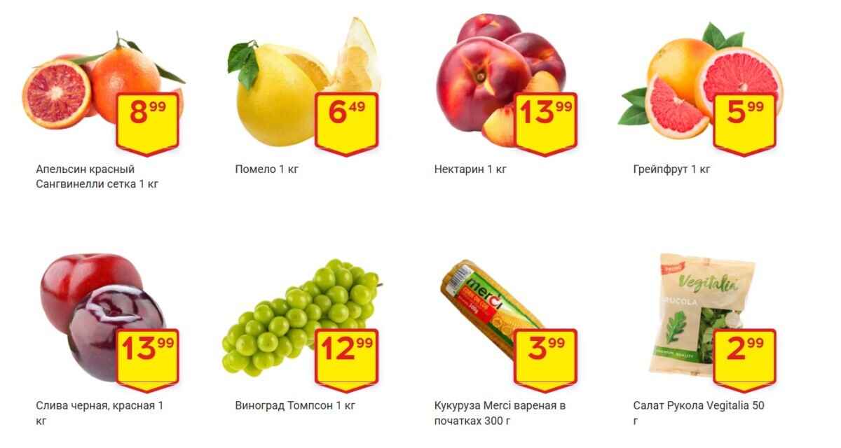А сеть “Санта” предложила покупателям приобрести по сниженным ценам апельсин, грейпфрут, нектарин, сливу, кукурузу, виноград и не только. С ценами можно ознакомиться на скриншотах ниже, акция продлится по 18 марта .