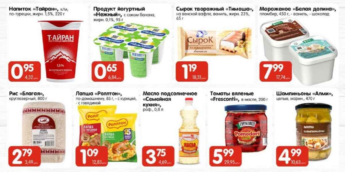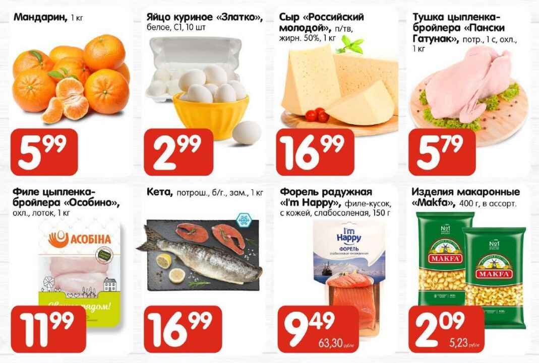 Компания “Алми” в свою очередь объявила с 13 по 16 марта “топ-цены” на мандарины, яйцо куриное, сыр, тушку цыпленка-бройлера, кету, форель, кофе, стейк из мяса индейки, сервелат, креветки, икру, соки и не только. Посмотреть цены товаров можно ниже.
