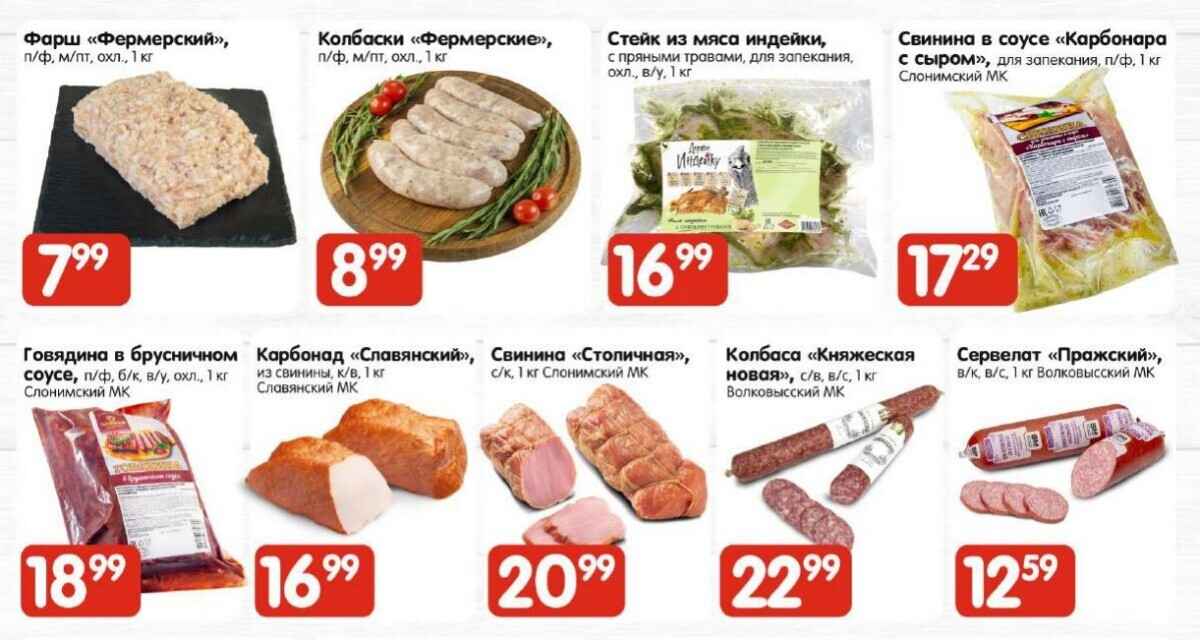- Колбаса вареная «Вязынка по-слуцки», высший сорт, 1 кг - 8,99 (-17%).