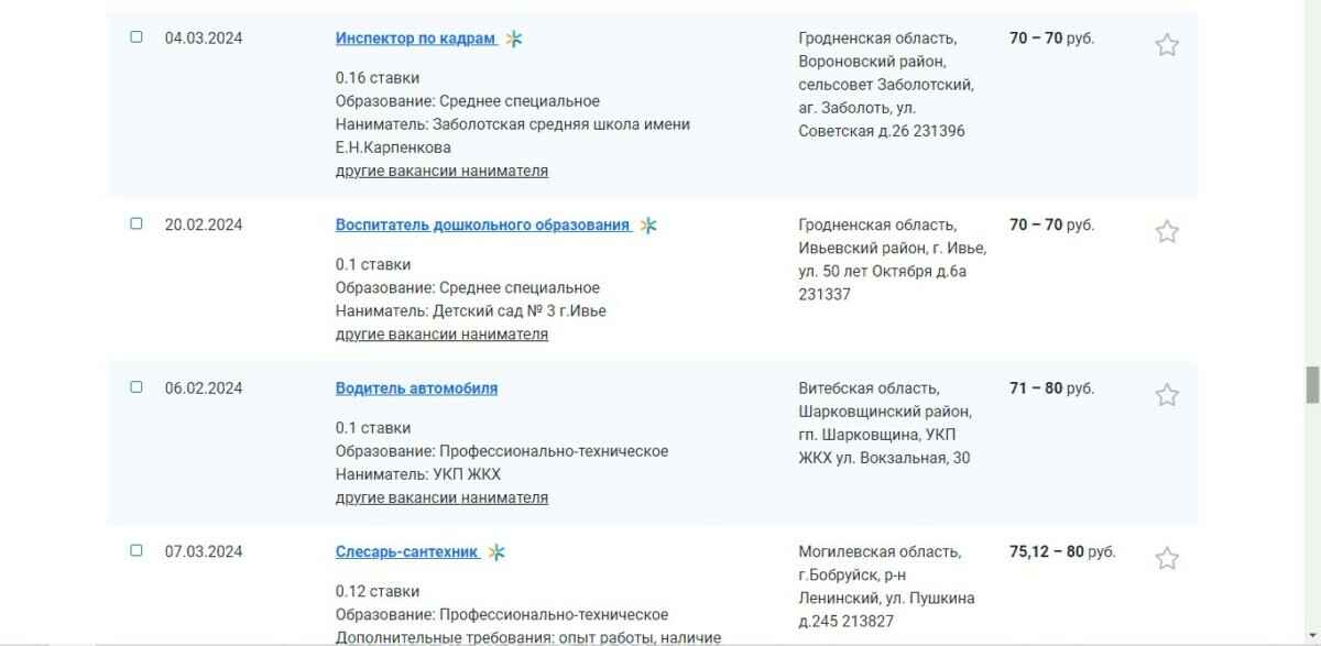 Сотрудники государственной службы занятости разместили вакансии, в которых указаны зарплаты размером до 100 белорусских рублей. Кто, с каким образованием и куда требуется за такие деньги?