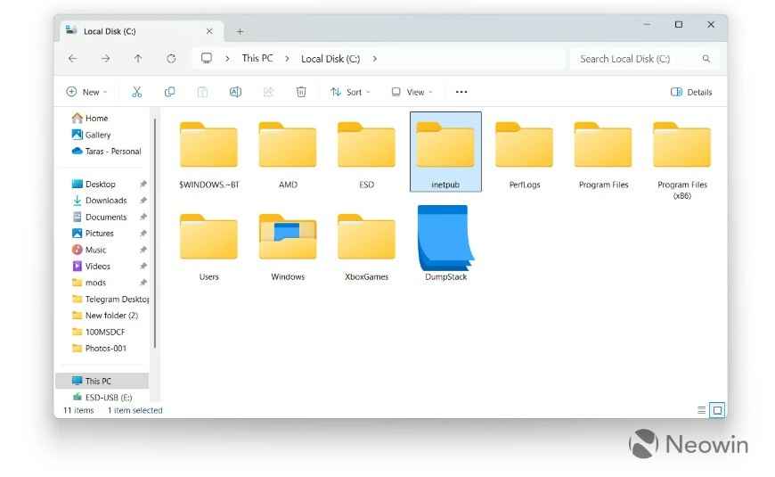Сразу на нескольких компьютерных форумах появилась информация от разных независимых источников, что папка под названием inetpub появляется на каждом компьютере после установления апрельского обновления Windows 11. Изначально в ней не содержится никаких файлов или подпапок и весит папка 0 байт. Создаётся папка автоматически самой операционной системой.