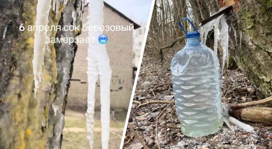 Одна из пользовательниц TikTok поделилась видео, сделанное, по её словам, 6 апреля 2025 года в Витебске. На кадрах видно, что на одной из берёз сок за ночь замёрз в огромные сосульки.