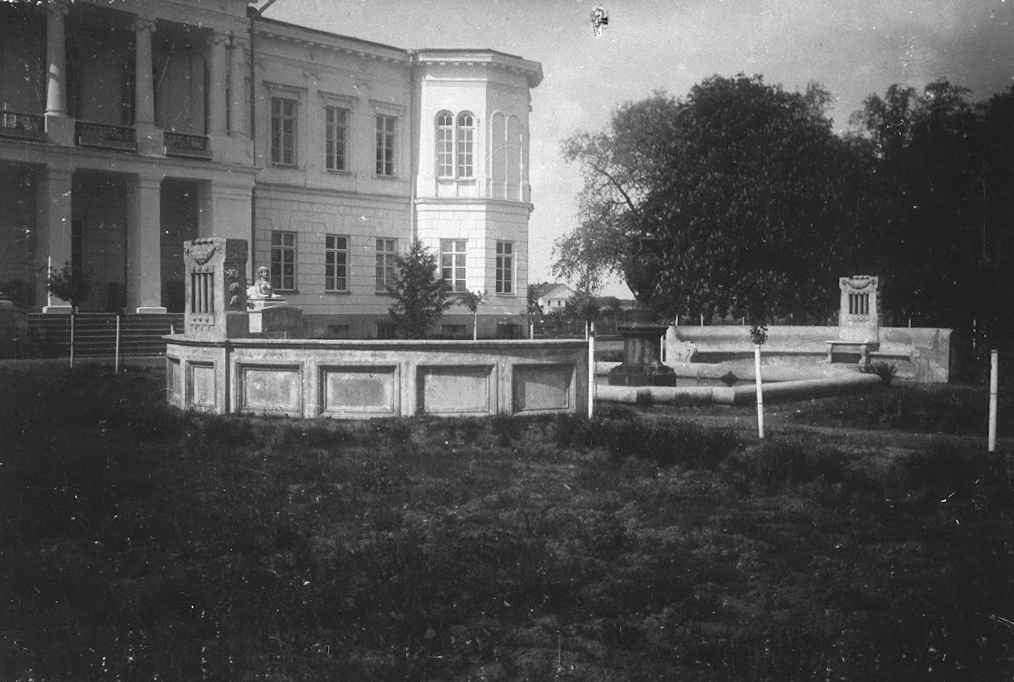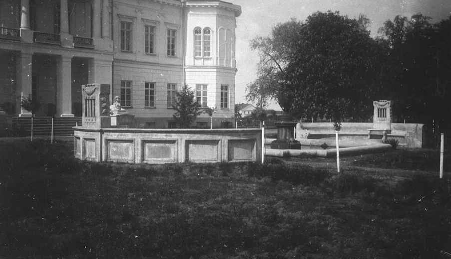 Справа раскинулся зелёный парк, который также ранее считался частью дворцово-паркового ансамбля, а у подножия самой усадьбы виднеются руины некогда роскошного фонтана. Его восстановление также прописано в договоре купли-продажи.