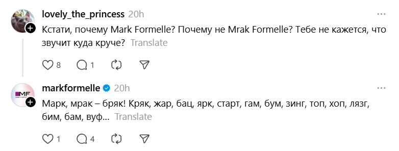 На момент написания новости Mark Formelle удалил свой ответ и последующие реакции на обсуждения белорусов. Однако пользователи сделали скриншоты и продолжили обсуждать ситуацию.