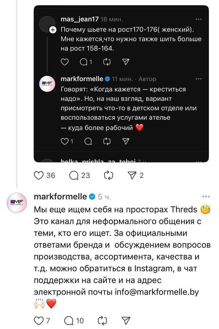 Представители Mark Formelle в Threds ответили на подобные комментарии следующее: