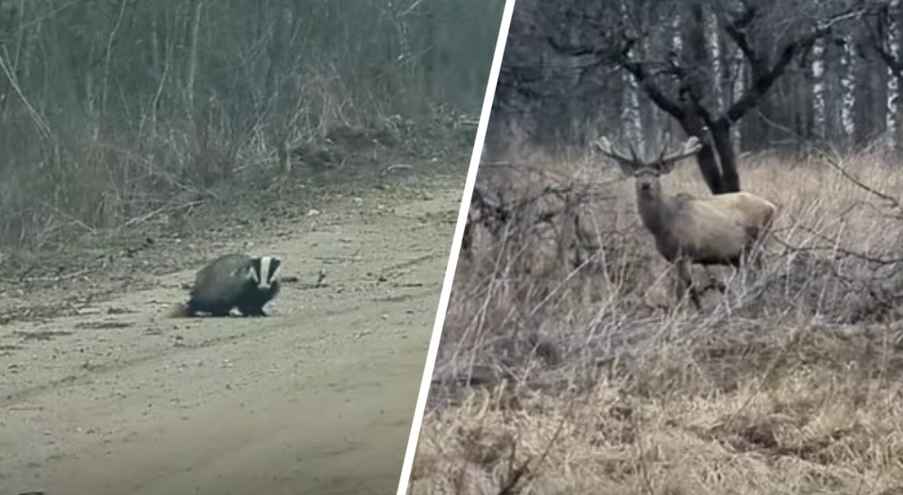 “Барсук, а это олень рядом. В одном кадре. Это как?” - спросил автор ролика. И тут же в кадр попал второй олень. Еще белорусы увидели лосей, журавля.