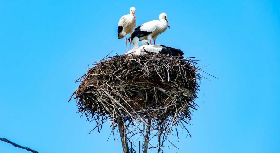 На Брестчине энергетики оборудовали новые гнёзда для аистов, пострадавших от урагана