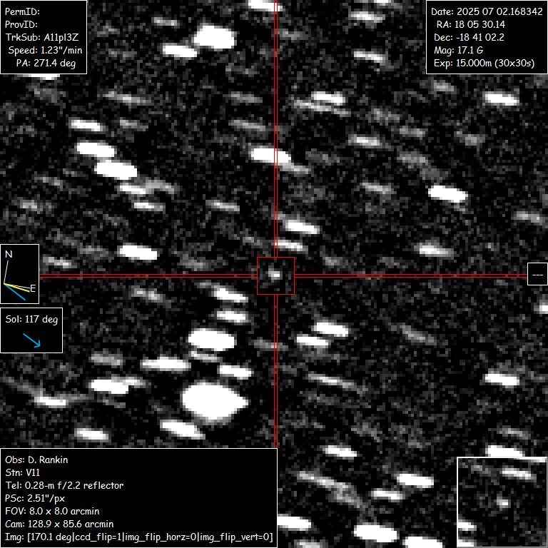 Американский астроном Дэвид Рэнкин написал в своих социальных сетях, что объект был впервые обнаружен во вторник в ходе финансируемого Национальным управлением по аэронавтике и исследованию космического пространства (NASA) исследования ATLAS на Гавайях.