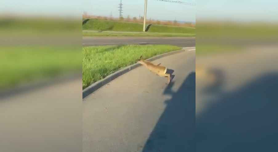 На видео видно, как косуля резко выбежала на проезжую часть, в несколько скачков преодолела одну дорогу, а потом другую. И все это перед носами автомобилей.
