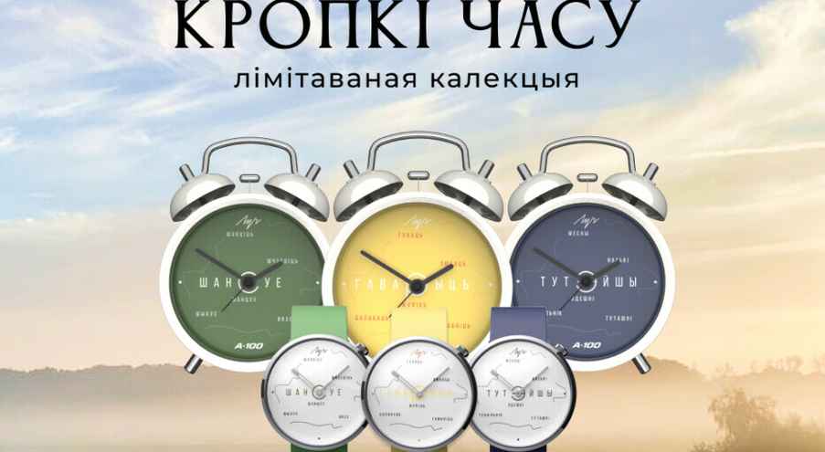 Минский часовой завод Луч совместно с АЗС А-100 выпустили лимитированную коллекцию часов и будильников “Кропкi часу”. Ее приурочили к Дню белорусской письменности и посвятили белорусским диалектам.