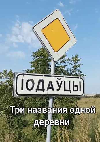 Белорус рассказал в TikTok о деревне в Поставском районе Витебской области. На одном из указателей при въезде название населенного пункта написано по-белорусски “Йодаўцы”, на автобусной остановке уже другая надпись - “Іёдаўцы”. А на еще одном дорожном указателе - “Іодаўцы”.