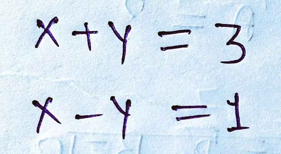 Итак, на картинке, под которой разгорелись жаркие споры, представлено три уравнения. Из условий задачи известно, сто сумма первого числа (x) и второго (y) равняется 3, а если из первого числа вычесть второе - получится 1. Зная эти два ключевых условия, нужно решить последнее уравнение.