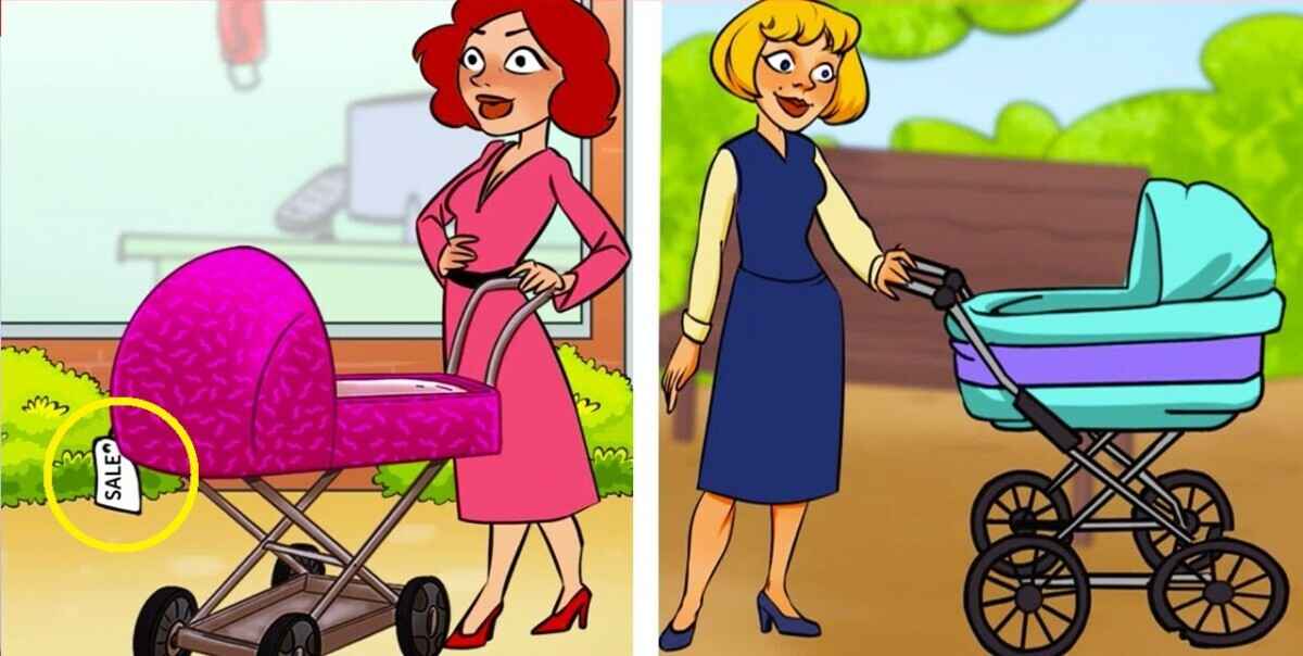 - Коляска второй мамы выглядит современной, дорогой и без каких-либо пометок о скидках. Казалось бы, мелочь, но в логических тестах такие нюансы решают всё.