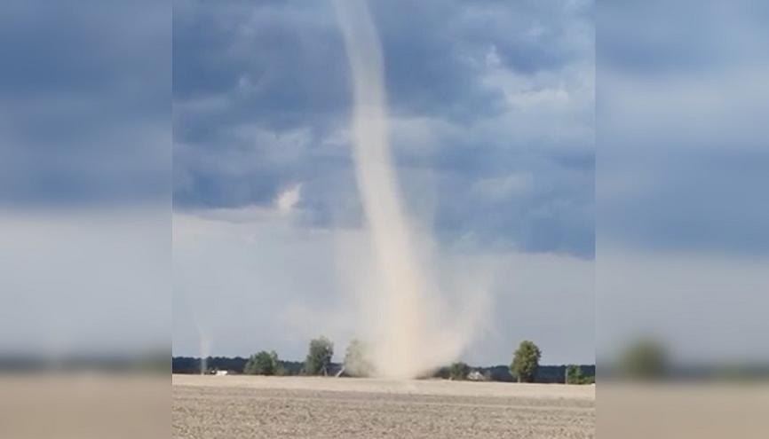 В Гомельской области на видео сняли, как по полю пронесся торнадо