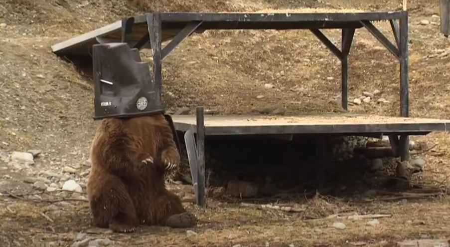 В зоопарке на Аляске показали, как тестируют мусорные баки с защитой от медведей