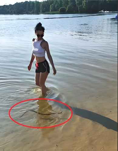 На кадрах видно, как девушка “прогуливается” по мелководью Цнянского водохранилища вместе со своим удавом: такой досуг она назвала “прелестью”. Рептилия послушно, будто по команде, плывёт рядом и совершенно не собирается покидать хозяйку. При этом других людей в кадре нет: может, убежали?..