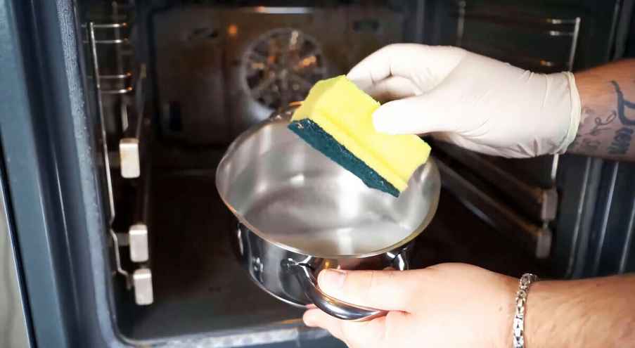 Процесс должен занять не менее часа, в зависимости от степени загрязнения. По истечении этого времени выключите духовку и подождите, пока она полностью остынет. Последний шаг – вытереть размягченную грязь мягкой губкой или бумажным полотенцем.