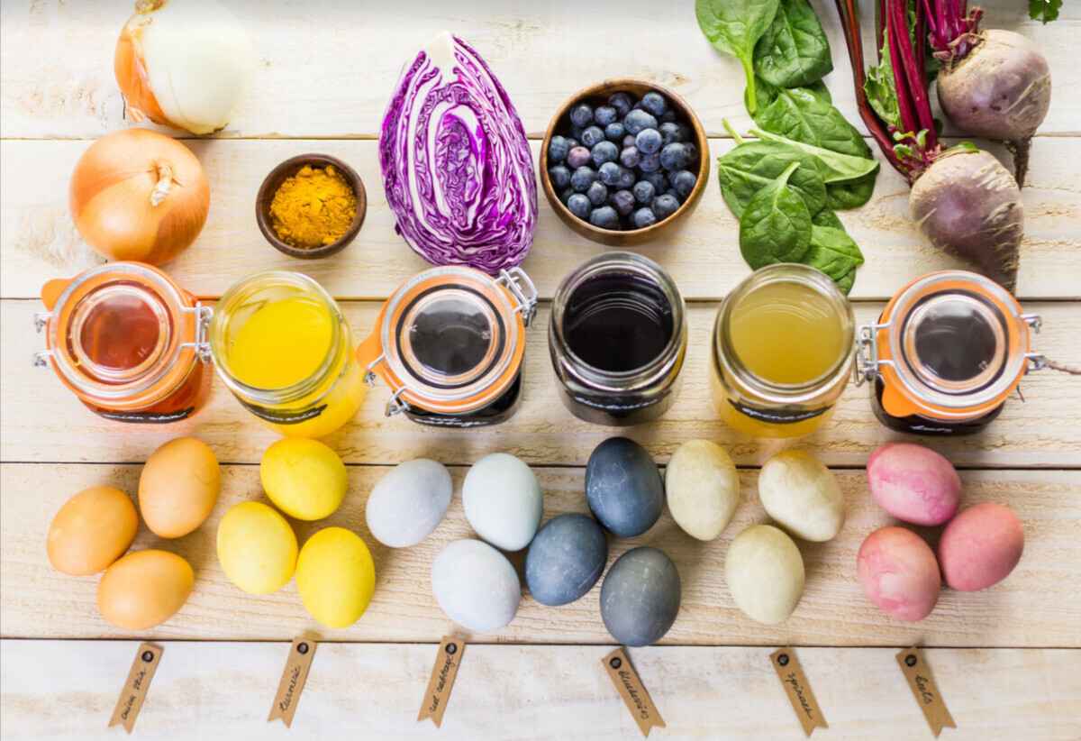 Используя отвар из листьев капусты, можно получить синие яйца, а увеличив количество уксуса — фиолетовые. Чтобы получить жёлтые яйца, нужен отвар куркумы. Кусочки свеклы придадут яйцам насыщенный розовый цвет, а кожура авокадо — пастельный зелёный оттенок. Чтобы покрасить яйца в зелёный цвет, используйте петрушку или шпинат.