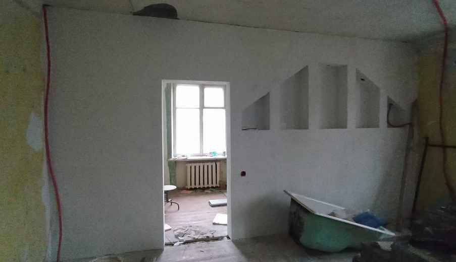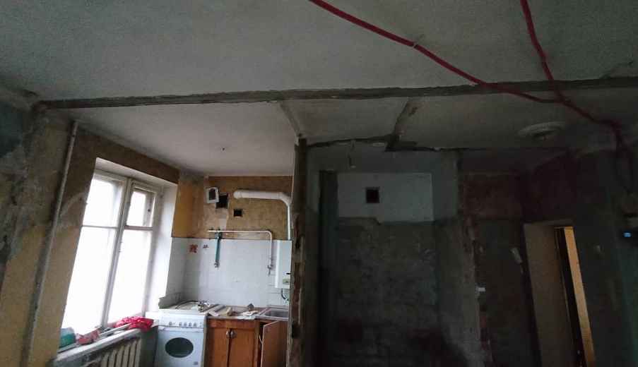Судя по фотографиям, сразу заехать, увы, не получится: квартира нуждается в капитальном ремонте. Внутри разбиты перегородки между большой комнатой, коридором и кухней, но при этом отсутствует стена в санузле. Сама недвижимость находится в двухэтажном кирпичном доме на 8 квартир по улице Ангарской в Минске.