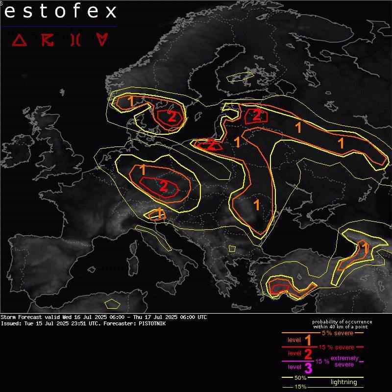 Авторы Telegram-канала о погоде @nadvorie, ссылаясь на данные Европейской инициативы-эксперимента по прогнозированию штормов Estofex, предупредил о высокой вероятности конвективных осадков (именно к ним относятся внезапные грозы, проливные дожди и град). В Беларуси, судя по прогнозу, их вероятность сегодня выше всего на юго-западе - в Брестской, Гродненской и частично в Гомельской областях.