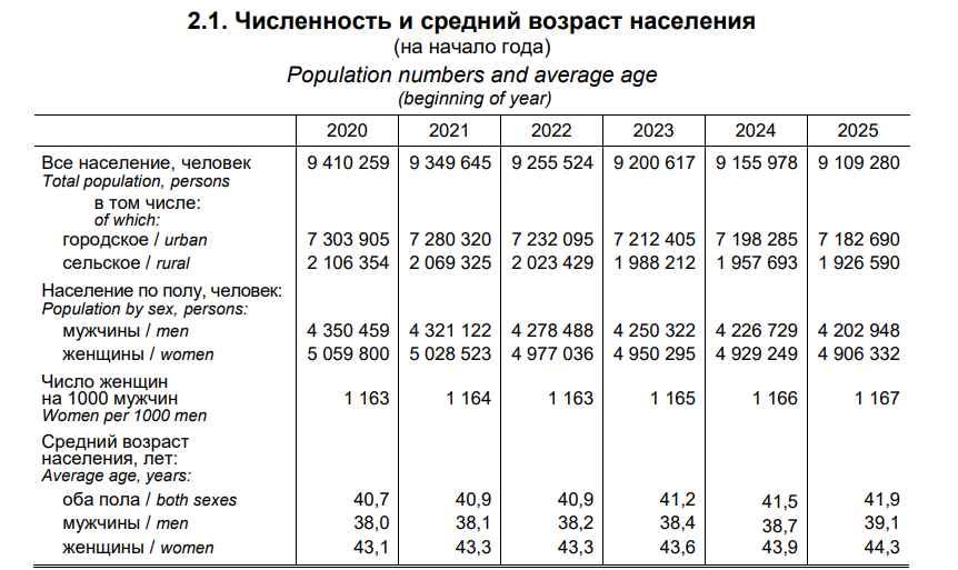 Национальный статистический комитет опубликовал сборник “Социальное положение и уровень жизни населения”. В нем, среди прочего, назвали средний возраст белорусских женщин и мужчин, количество человек, проживающих в стране на начало 2025 года, а также самые заселенные регионы.