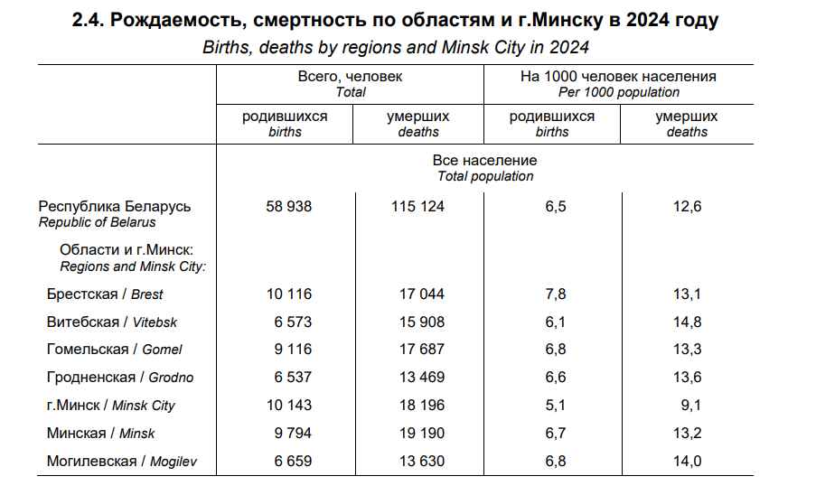 А еще, как сказано в сборнике, за прошлый год в Беларуси родилось 58 938 человек, умерло 115 124.