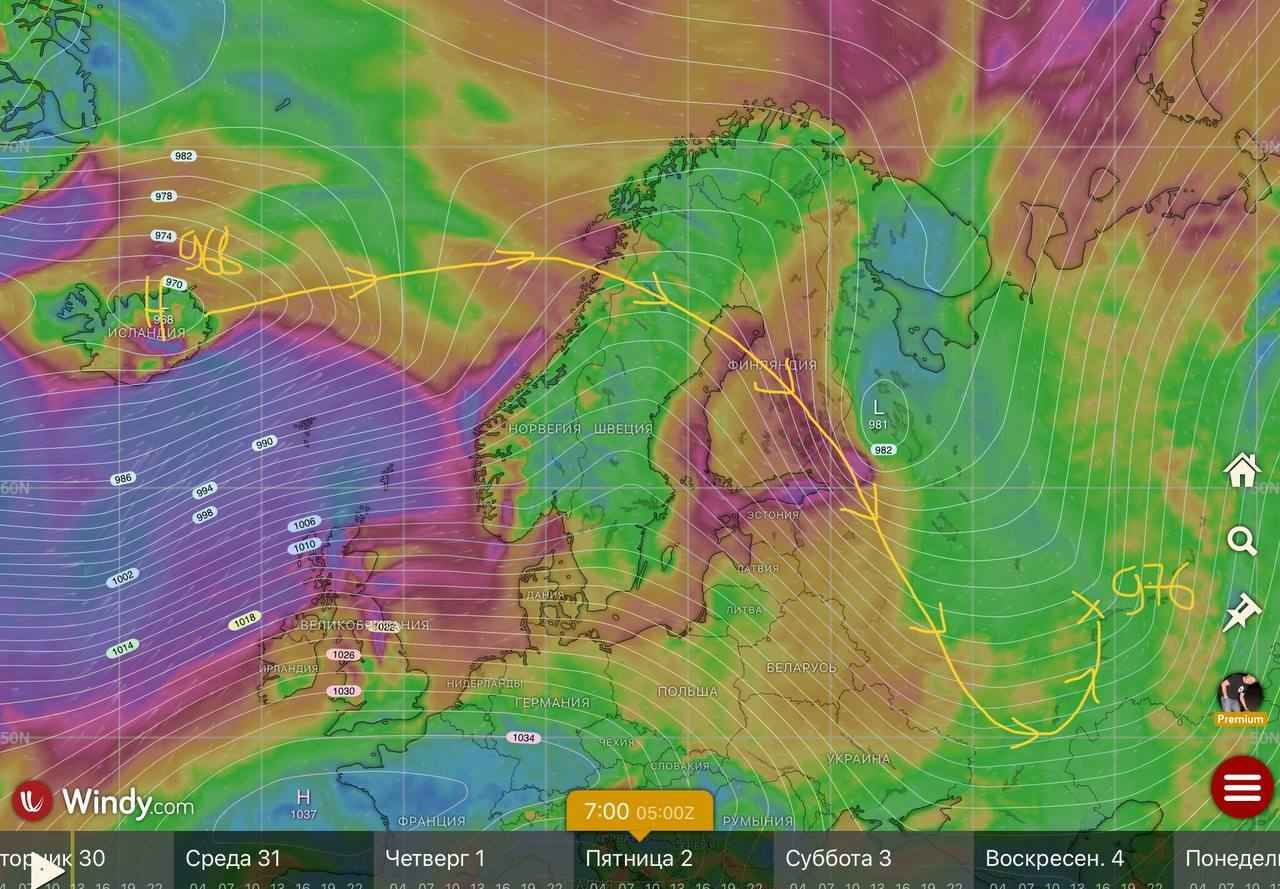 Как пояснили авторы телеграм-канала о погоде “Надвор’е”, циклон “Н” примерно в пятницу, 2 февраля, придёт в Беларусь из Исланди через Норвегию, Швецию, Финляндию и северо-запад России.