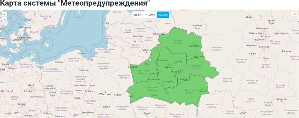 Других неблагоприятных погодных условий, по данным Белгидромета, до 21 часа 26 апреля ждать не стоит, карта метеопредупреждений “зеленая”.
