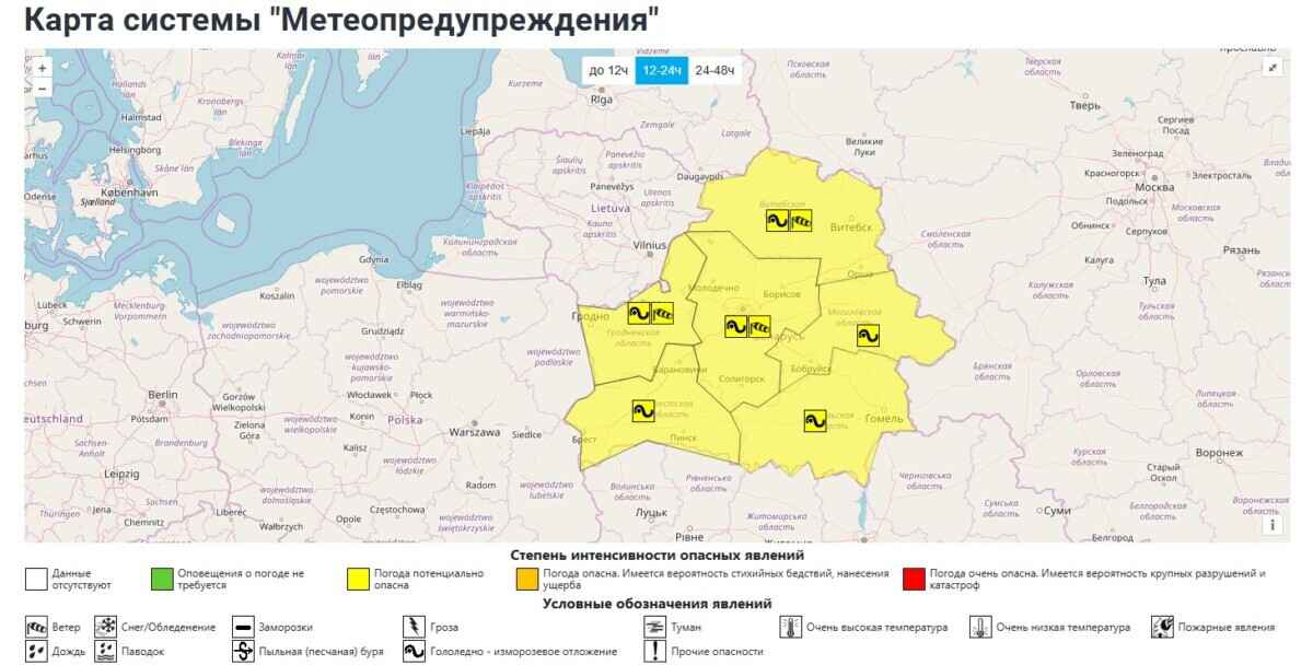 Между тем, на вторник, 8 апреля, синоптики понизили уровень метеоопасности для всех регионов страны - до жёлтого уровня. В большинстве областей сегодня главную опасность для белорусов будет представлять гололёд, но в трёх регионах - на Минщине, Витебщине и Гомельщине - как минимум до 21:00 8 апреля будет также сохраняться потенциально опасный ветер.