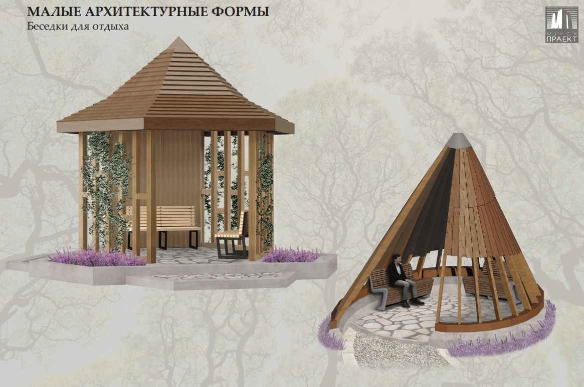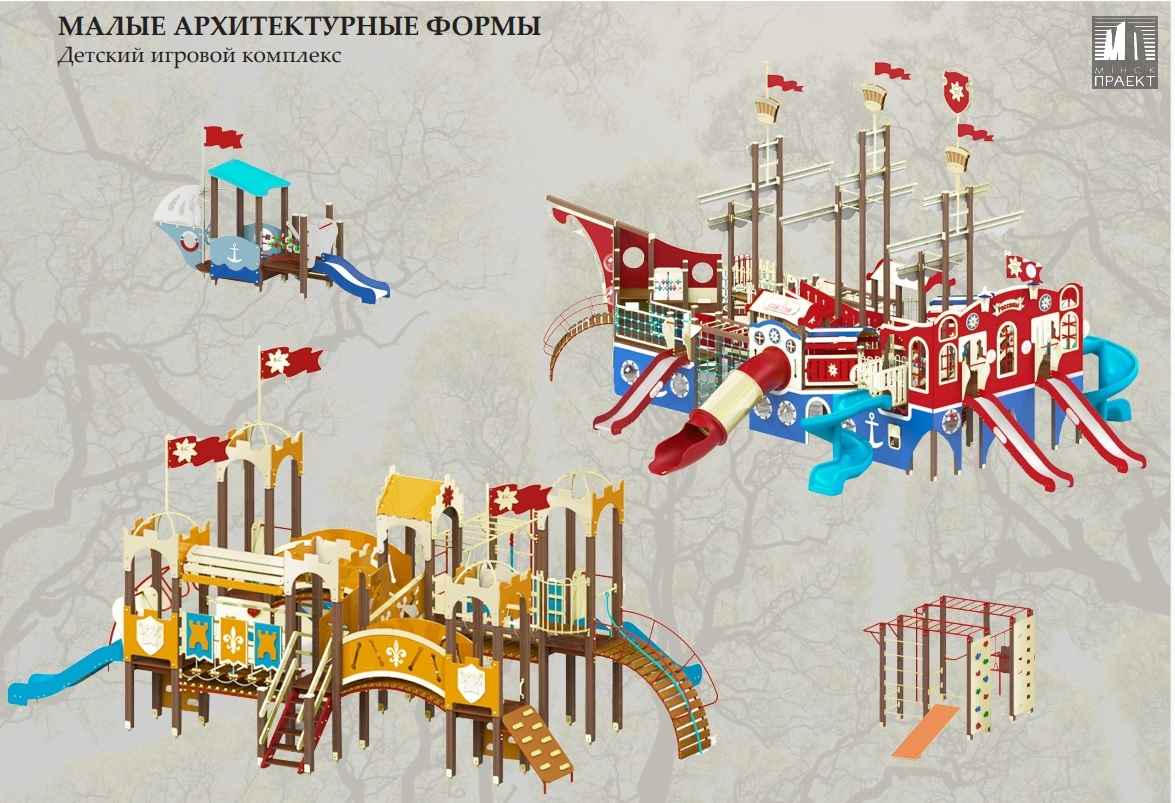 В северо-западной части парка предусмотрели детскую площадку с игровыми комплексами, площадку для волейбола и зону отдыха с беседками.