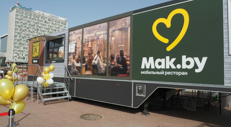 Мобильный ресторан компании Mak.by представили в Минске. Его первой остановкой стала площадка перед универмагом “Беларусь”. Далее он отправится по стране, останавливаясь в разных городах.