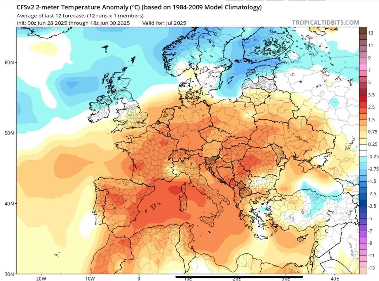 Если верить долгосрочным моделям, то после этих качелей погода может стабилизироваться. По предварительным расчётам, июль-2025 в Беларуси может оказаться чуть теплее климатической нормы (на 0.25—0.75°С) и, что более заметно, весьма сухим.
