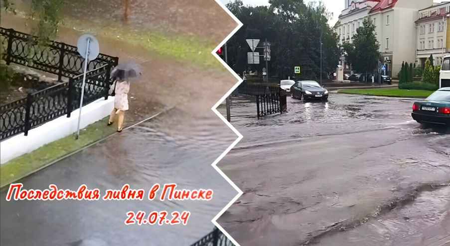 Кажется, совсем недавно мы писали про затопленный Минск, как сегодня похожие кадры прилетели уже с юга Беларуси. Так, во власти грозового фронта оказался Пинск. Ливень, который шёл почти час, подтопил многие городские дворы и дороги. Вода текла ручьями, движение было затруднено.
