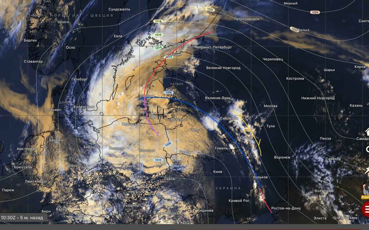 Как пояснили авторы Telegram-канала @nadvorie, на погоду в ближайшее время повлияет циклон, центр которого сейчас находится над Калининградской областью России. Именно его холодный фронт проходит через северо-восточные районы Беларуси.