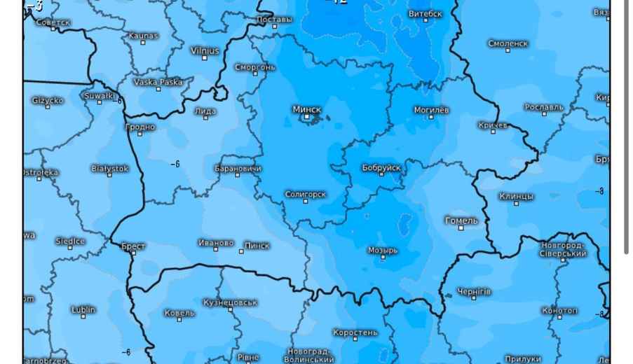 С такими цифрами в целом согласны и в Белгидромете. По их оперативному прогнозу , из-за того, что наша страна оказалась на периферии мощного антициклона, в Беларуси усилятся морозы, но снегопадов при этом ждать не стоит - погода будет стоять облачная, с прояснениями.